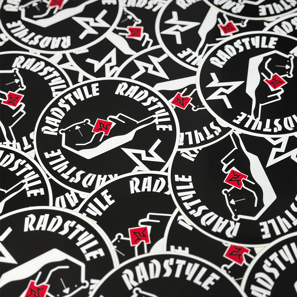 RADSTYLEのキャラクター「ラッゴ君」の直径13cmの丸型ステッカーです。